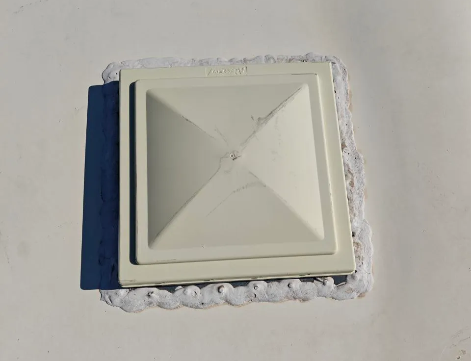 Vent — a square hole for ventilating RV spaces such as bathrooms and kitchens.