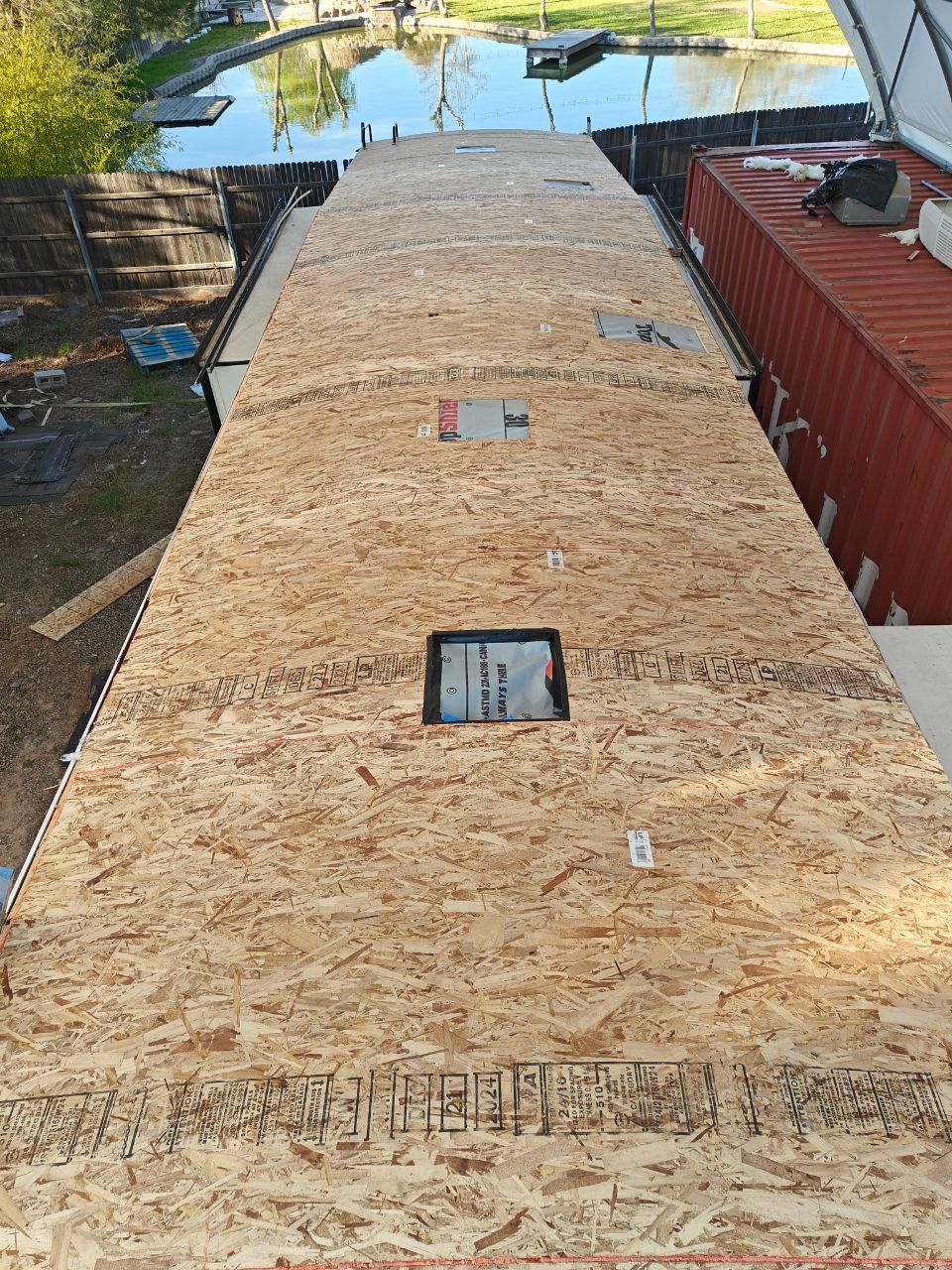 Plywood — serves as the solid base for the outer covering. The thickness is typically 3/8" or 1/2".